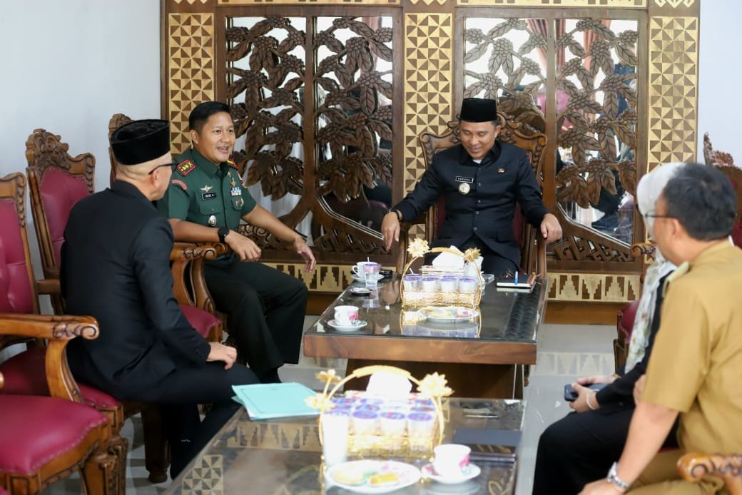 Bupati Lampung Barat Parosil Mabsus dan Dandim 0422 Letnan Kolonel (Letkol) Infanteri (Inf) Rizky Kurniawan ketika melakukan pertemuan di rumah dinas Bupati